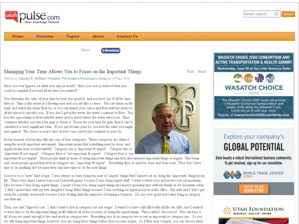 I used to be a “now” kind of guy. I was always so busy doing the now or “urgent” things that I missed out on doing the “important” things in my life. There were times I missed my son’s baseball games because I was doing urgent stuff. I went a whole year and never rode my mountain bike because I was doing urgent things. I spent a busy year doing urgent things and missed spending time with my family at our mountain cabin. I didn’t spend time with my two daughters doing father things because I was working on urgent projects at the office. My wife and I didn’t get away for romantic weekends because I was dealing with the urgencies of running a business. No one ever spent more time living in category one than me.